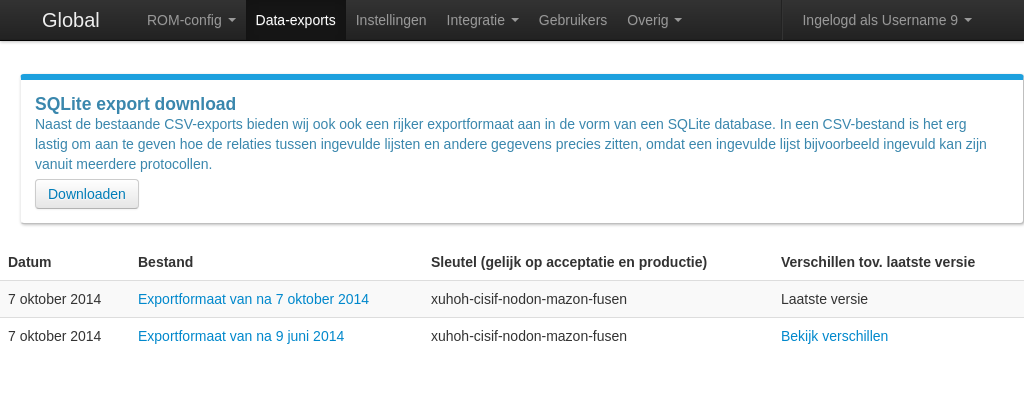 - Er worden verschillende formaten bijgehouden van de dataexport. Als je onthoudt wat de naam en sleutel was van het formaat wat je hebt gedownload, kun je later nieuwe data in hetzelfde formaat downloaden. Formaten worden één jaar lang ondersteund. Daarna wordt er geen dataexport meer voor gegenereerd.