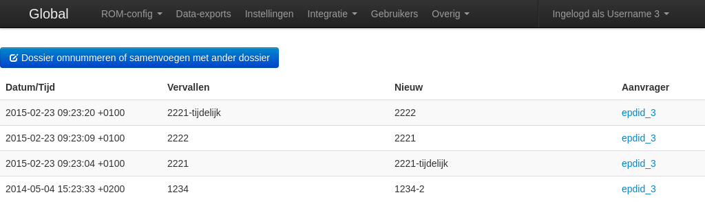 Af en toe komt het voor dat binnen het EPD een bestaand cliëntendossier een nieuw clientnummer gekregen heeft, of dat een cliënt per ongeluk twee dossiers had, en dat de data van beide moet worden samengevoegd.