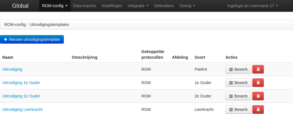 Hier kun je de templates die gebruikt worden voor het uitnodigen van een patiënt of andere respondent aanpassen.