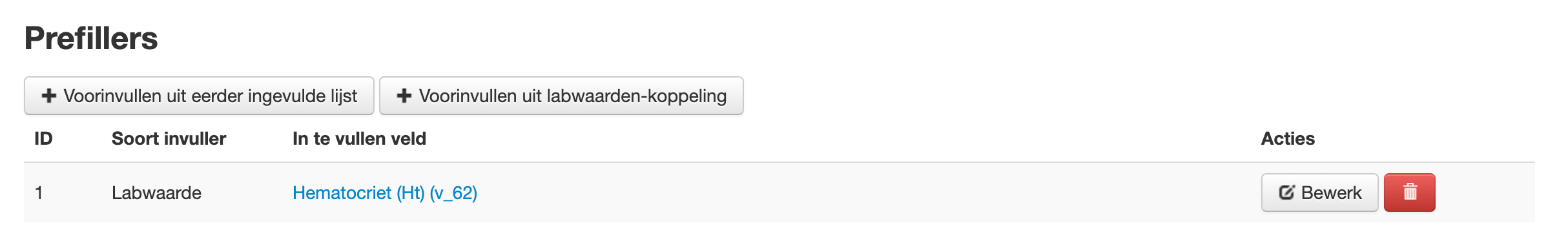 L - "Hoe oud": Meestal is het niet wenselijk om hele oude labbepalingen over te nemen, want de vragenlijst wordt waarschijnlijk voor de huidige situatie ingevuld. Het is wat onhandig maar om de technische implementatie van deze admin-pagina binnen de perken te houden is dit veld het aantal seconden dat een labwaarde oud mag zijn, hoewel het ook mogelijk is om in te vullen met het ISO8601 formaat.