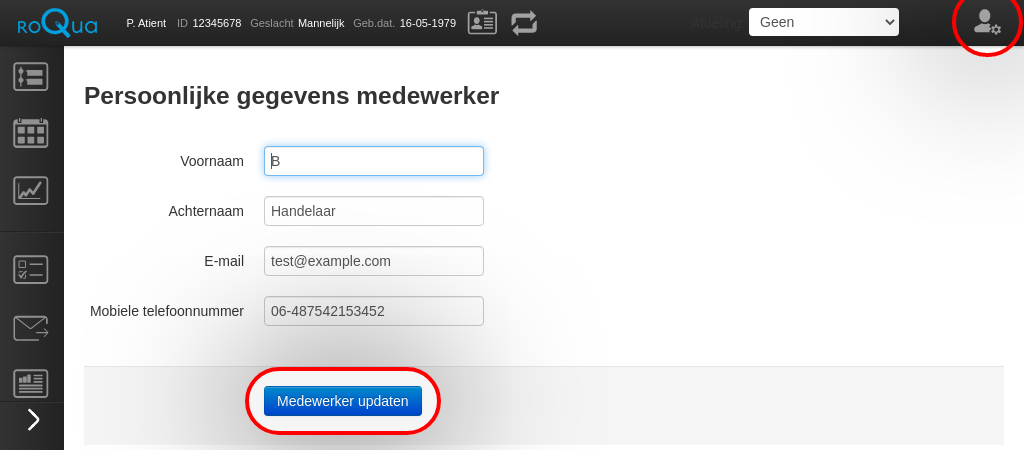 Voer je gegevens in en klik op "Medewerker Updaten".
