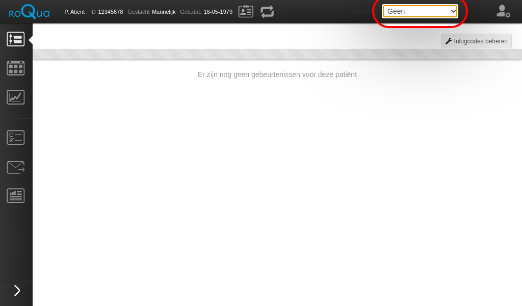 - Als je werkzaam bent op meerdere afdelingen, selecteer je de afdeling waar de patiënt die je op dit moment in RoQua hebt geselecteerd in behandeling is.