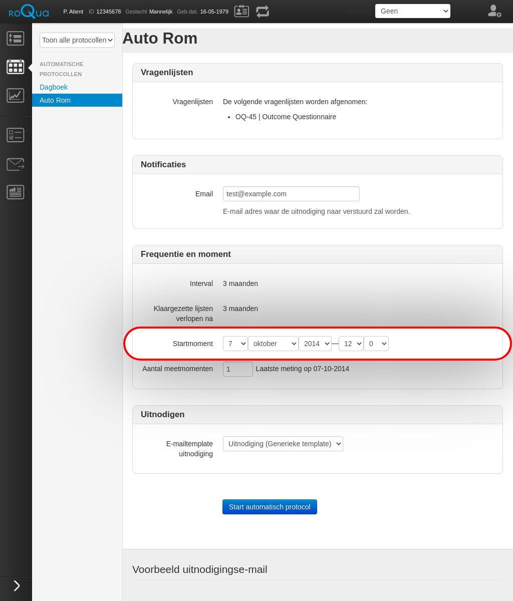 Stel het moment in waarop het protocol in werking moet treden en klik op "Start automatisch protocol".