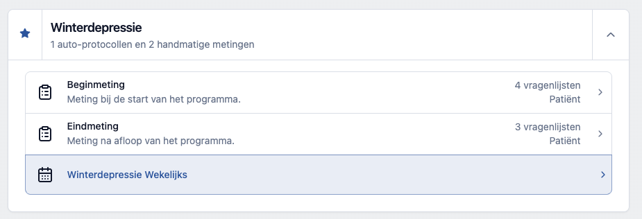 Wanneer het abonnement op een auto-protocol op dezelfde dag begint met meten, verschijnen de bijbehorende vragenlijsten ook meteen in het lijstje van klaargezette vragenlijsten bovenaan de timeline en gaat er meteen een uitnodiging de deur uit.