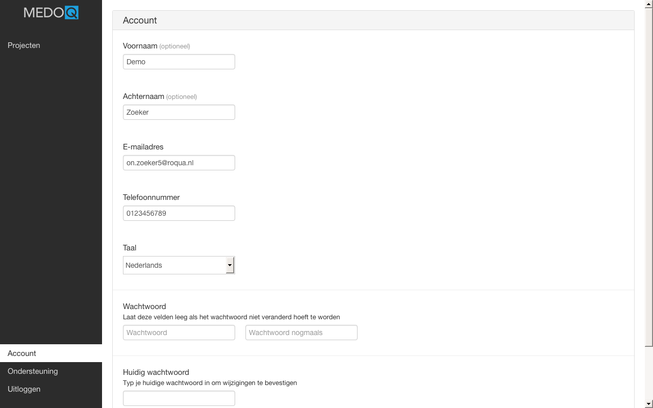 Om veiligheidsredenen vragen wij ook om een contact telefoonnummer in te stellen in Medoq. Wanneer u uw tijdelijke wachtwoord verliest of om een andere reden een nieuwe nodig hebt, zullen wij u op dat nummer bellen om uw identiteit te controleren.
