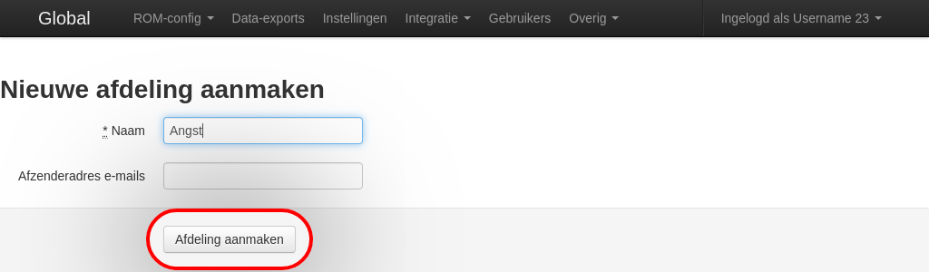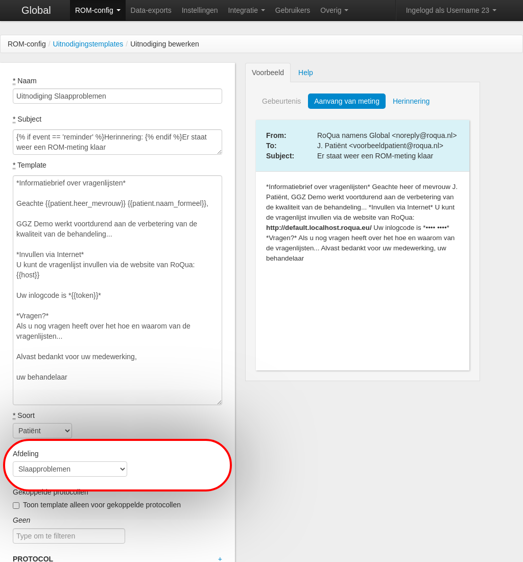After pressing 'Create Department', the department is created and invitation templates and protocols can be linked to it. This is done under the configuration pages for protocols and invitation templates under the ROM config menu.