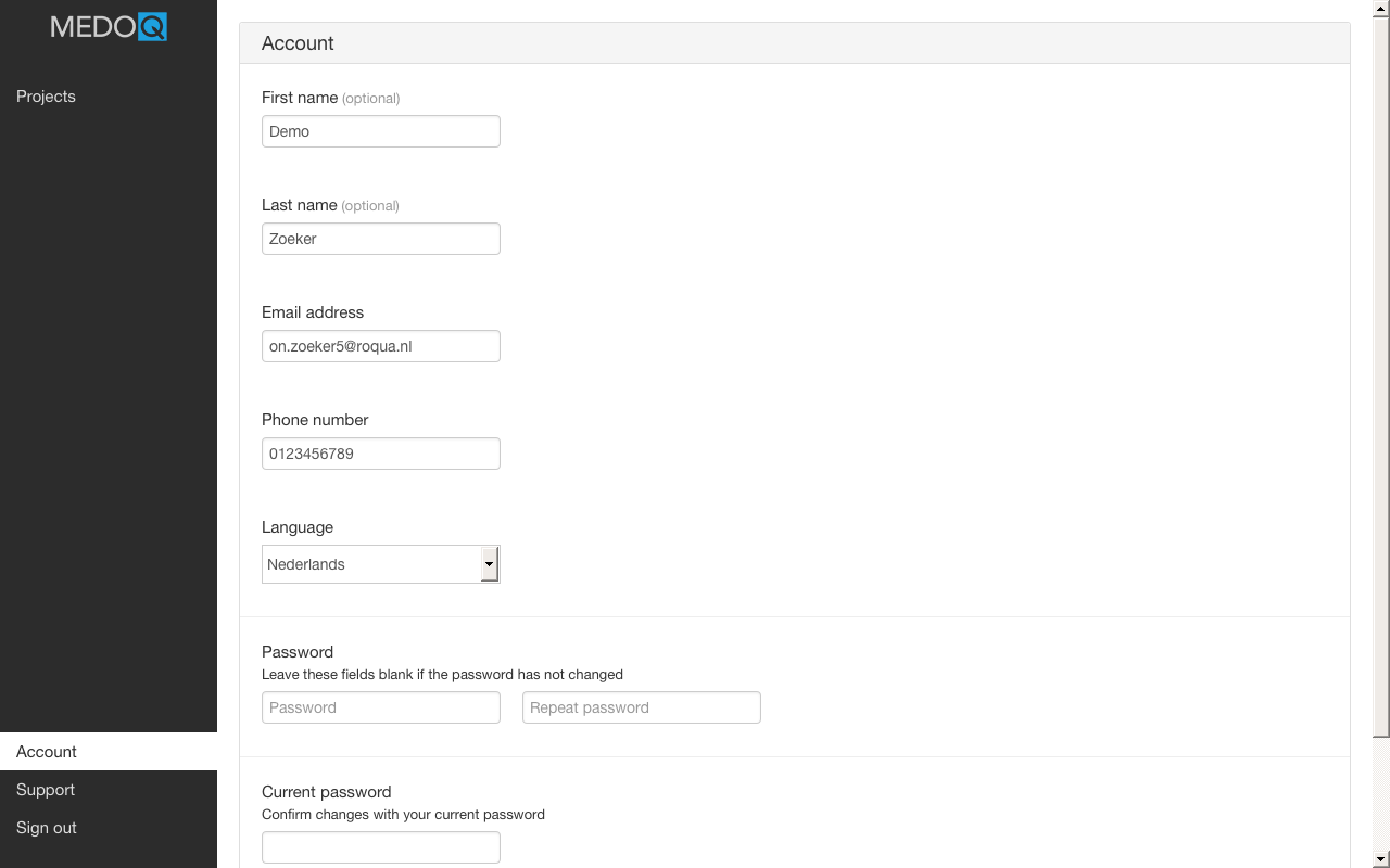 You will receive an email containing an activation link when you are invited to administrate a Medoq project. If this is your first invitation to a Medoq project, you will be asked to enter your name and a password. On the following screen you will be asked to configure two factor authentication.